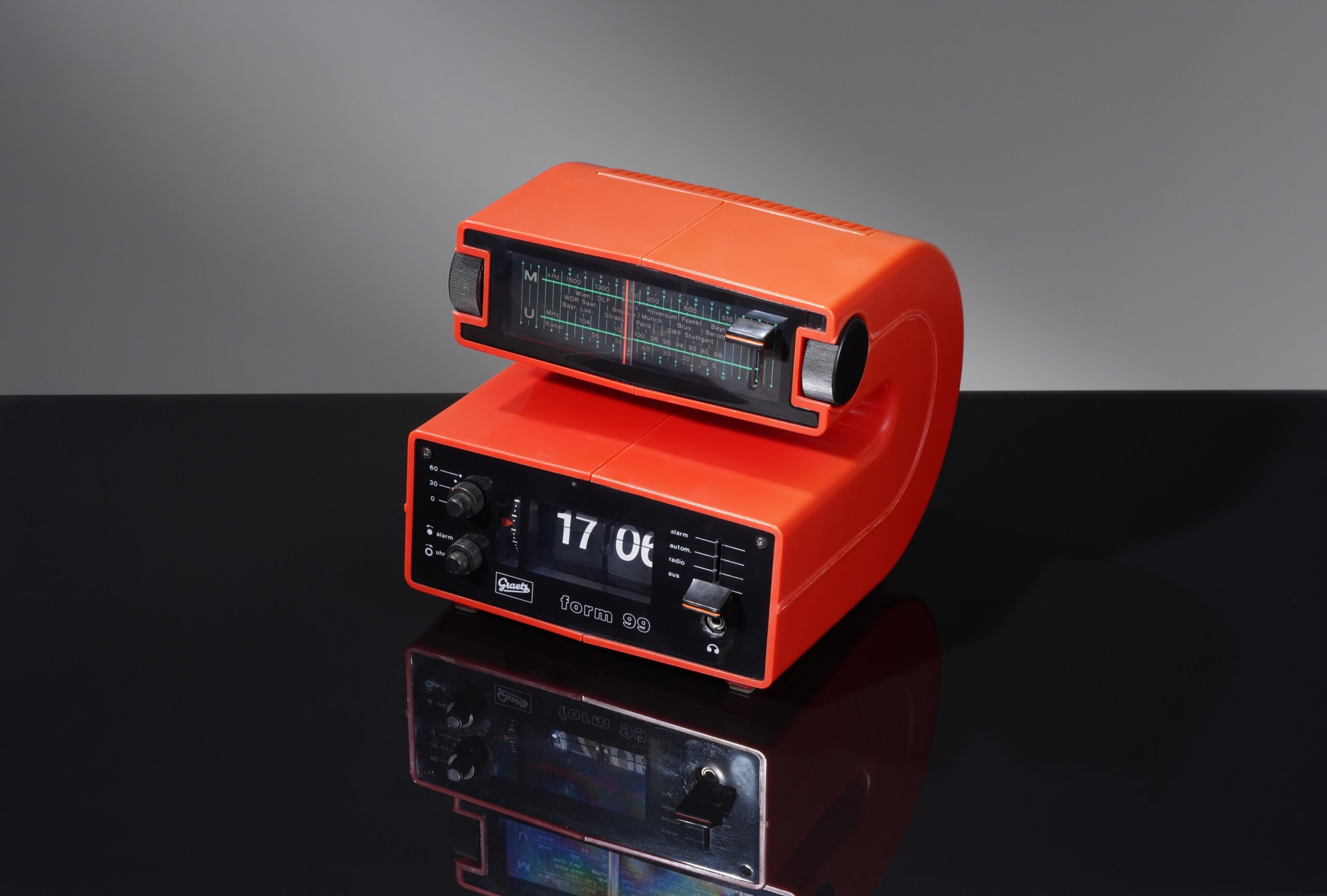 В гонку «космического» промышленного дизайна постепенно включились и европейские компании. Так, в 90-е годы XX века немецкая компания Grundig начала выпускать настоящий будильник космической эры – модель под названием «Grundig Sono Clock 100 Radio Alarm Clock». Контрастные зеленые цифры на черном дисплее напоминают о показателях на панели управления космическим кораблем, а сам корпус часов выполнен в форме, которую можно сравнить с летающей тарелкой.