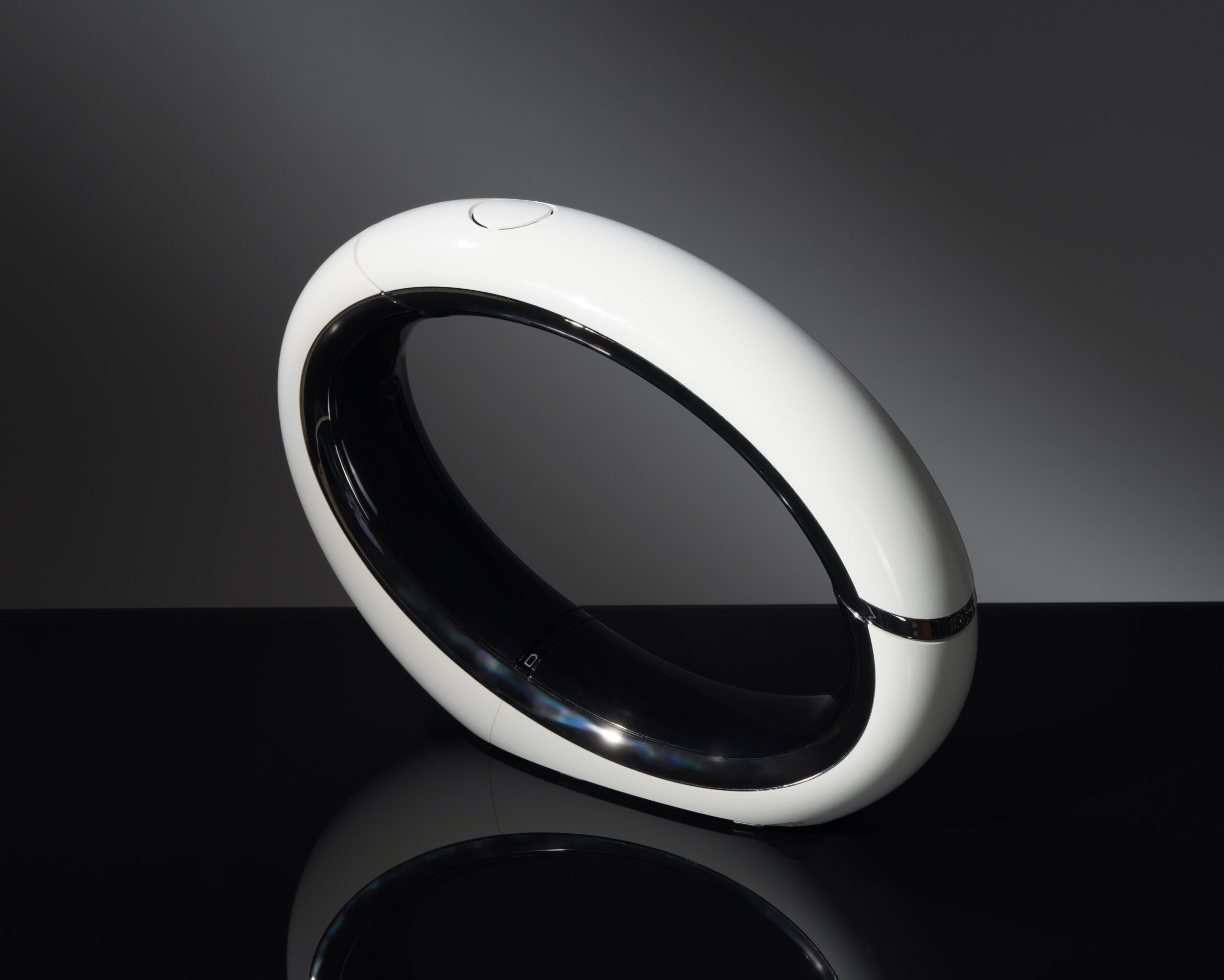 Граница двух элементов конструкции визуально подчёркнута хромированной вставкой. Сама окружность овала разделена между трубкой и базой неравномерно – на рубку приходится лишь верхняя треть, имеющая довольно умеренный изгиб. Таким образом, дизайнер позаботился не только о красоте своего творения, но и о банальной эргономике. Лаконичная, необычная для телефона форма корпуса привлекает к себе внимание, превращая этот аппарат в настоящее украшение интерьера и своеобразный образец современного искусства.